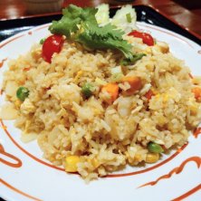 "ナンプラー"で炒めた エビ入りのチャーハンの上には "プチトマト"と"パクチー"もライドオン 香ばしく炒められてあり 中華風のチャーハンとも違う アジアンテイストがいいね 添えてある"レモン"搾ってかければ 爽やかな味わいになりますよ