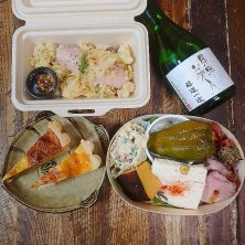 テイクアウト飲み🍶 シュークルート いちぢくゴルゴンゾーラのキッシュ べったら漬のキッシュ 究極のポテサラ 漬けピーマン トマトのタプナード和え カステラたまご焼き 帆立と海老のテリーヌ ローストポーク 🍶東洋美人(山口県)
