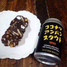 〆は、チョコレートサラミ 大好きなやつ(๑´ڡ`๑) 🍺ココナッツアンパンスタウト In a daze Brewing (長野県) https://inadazebrewing.com/coconut-oatmeal-stout/