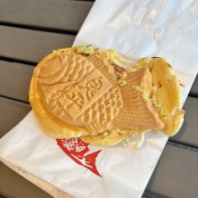 サービスエリアのグルメランキングで1位だったらしい、羽生サービスエリア[上り]鬼平江戸処にある『お好み鯛焼き』 シャキシャキのキャベツ、マヨ+ソース、紅しょうがが、鯛焼きの皮で挟んである。 うん、まあまあ美味しかったです!