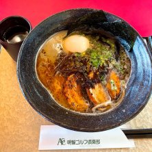6/9のゴルフ🍚⛳️ 新メニューの豚骨ラーメン黒頂きました。 焦がしニンニン入りなので黒との事。 さほどニンニク臭なし。 美味しく頂きました〜。