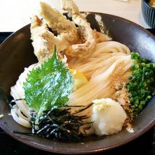 さぬきで修業された店長さんのお店。うどんは冷汁かぶっかけみたいな方がつるつるコシがあってよい!この天ぷらがサクサクで嬉しい。海老はぷりぷりだし、竹輪は大きいし!大満足でした