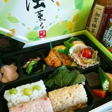 ❤思い出連投④❤ ★6/6駅弁 ちょっと前ですが 演奏会&レッスンで東京~♡ ♡風香る弁当✨✨ 緑の初夏の風~ 筍、梅、枝豆の俵寿司。 焼き海苔が付いてて巻いていただきます。 最初から巻いてないので彩りも鮮やかだしパリパリ海苔が嬉しいね♡(^∇^)
