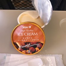 スジャータアイスクリームの新作。 キャラメル ヘーゼルナッツ プラリネ ナッツがゴロゴロ入っていて心地よい食感。 甘すぎず、スジャータのアイスのミルク味を 活かした味わいです。 車内の温度が暑いくらいで、アイスクリームが食べたいモード全開でした。