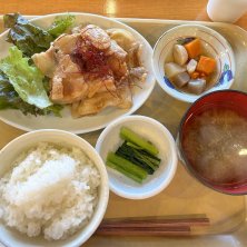 ランチは越後もち豚の生姜焼き定食🐖麹につけた、豚肉が柔らかくて甘い(^^)コシヒカリと相性バッチリ👌