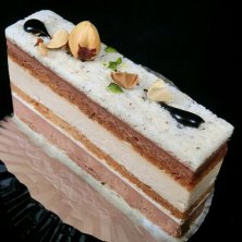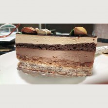 エムコイデ 断面しか写真残ってない。 自分のバースデーケーキに購入。 ムースが定評あるけど、バタークリームのケーキも美味。 キャラメルというワードに惹かれて購入。 ナッツがもうちょっとローストしてあってもいいかも。