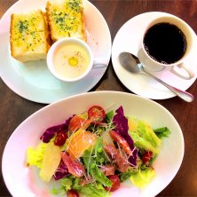 自分で作って言うのもなんだが、 これ美味し過ぎる、自家栽培のパセリで手作りのガーリックバターと自家製フォカッチャ^_^ 冷製コーンスープもぴったり メインはフレッシュグレープフルーツと厚切り生ハムのたっぷりサラダ 美味しいからお店で出したい。と 手間暇かけております^ ^