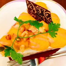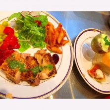 昨夜の音楽祭は満員御礼で素敵な音楽をありがとうございました。 料理の評価も高く日頃の勉強の結果だとスタッフみんなで喜んでおります^_^ 前菜 キノコのテリーヌは森をイメージしました、 イチジクの胡麻クリームソース 自家製フォカッチャ コーンスープ 鶏肉のコンフィに香草ソースと赤ワインソース