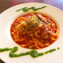 本日のおすすめランチ 「牛スジ煮込みのラグーソース」 じっくり煮込んだトロトロの牛スジに、 トマトソースがからんで、自家製ジェノベーゼペーストがアクセント^_^ http://s.tabelog.com/aichi/A2301/A230113/23006851/