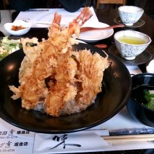 大海老天丼 ¥1700(税込) ❮お吸い物・サラダ・コーヒー付❯ お店の雰囲気も良く美味しかった☆ ボリュームすごかった!