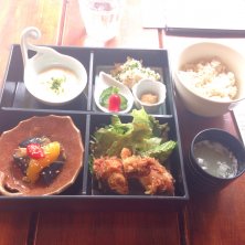 なんか良い感じの和カフェがある?! と入ったら、悩み相談聞きます。とか説法書いた紙がテーブルにあるわ、インド像の置物があるわ、なんかヤバいとこきたなー・・・怪しい宗教? とキョロキョロしたら、観音像やら大仏の顔面が祀ってある!! そして袈裟きたお坊さんがいるー!! 実はお寺カフェでした。 怪しい新興宗教じゃなくてホッとしましたw 寺カフェやすらぎごぜん 麦ご飯もお味噌汁もお惣菜も丁寧に作ってあって美味。 お漬け物にはほんのり香る桜の花つき。 なんか心が洗われるような気持ちになるごはんでした。