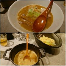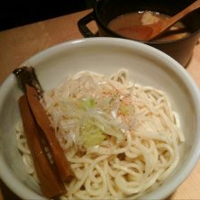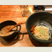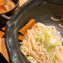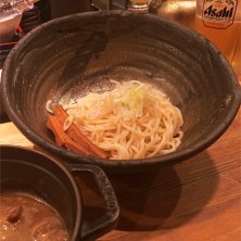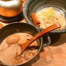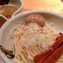 味玉もつつけ麺! プリプリトロトロのもつを使用したつけ麺。 サラリとしたスープに、もつの脂の旨味がだんだんと滲み出ていく…!
