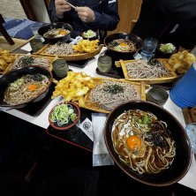 金曜日のお昼、職場の納会っぽい何か🙄 すでに休んでる人も居るので四人だけ(○`〜´○) ひのき屋さんの特製セットは温かいのと冷たいのと天ぷらと一式で入ってて蕎麦好きにはたまらん∩(*´`∩)♡