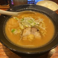 北海道らーめん 壱鵠堂 瀬谷店にて、期間限定の豚肉と根菜のコク味噌らーめん+ライス小。 仕事の合間にチャチャッと昼メシ。前日のかつやは黒味噌チキンだったけど、この日は赤味噌のしょっぱスープに豚肉と根菜。大根、人参、ごぼう、こんにゃく。量的にはそれなりにあったけど、スープ量とのバランスか具材がほとんど沈んでいて見た目は残念😣 具材とスープをごはんにインしてセルフ雑炊。ごちそうさま🙏