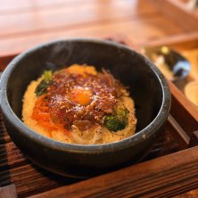 石焼ビビンパと酵素玄米。ヤギがあちこちにいてのんびり…