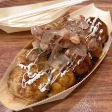 ソースたこ焼き。台風のお盆は他に行くところがない人がたくさんいました。