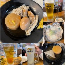 お姉様と定期飲み。肌寒さもあったのでおでん。白滝も大根もハンペンも味しみしみ。焼きヤングコーンも塩で甘味増美味しい。とりあえずのビールからグレプルハイ✖️2、角ハイボールと烏龍ハイ。お話してかなりボットスタジオで疲れてたけど楽しい美味しい夜でした