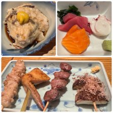 焼き鳥屋さんのコース お刺身やシュウマイ、厚焼き卵、もちろん焼き鳥 そして〆は自家製うどんで(* ̄▽ ̄)