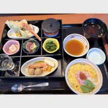 四季めぐり膳(蟹いくらちらし) 久しぶりに行ったらどれも美味しそうで、迷いに迷った結果、一つで色々な物が食べられるお膳にしました(^^) 鮑の刺身が歯応えも良く美味しかったです♪