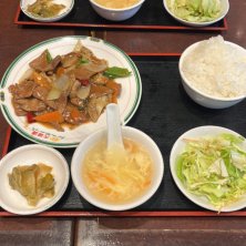 豚肉とキャベツの野菜炒めセット ¥700 ピリ辛のタレとルービーの相性は最高! 満腹です٩(๑^o^๑)۶
