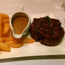 自分史上1番美味しかったステーキ´ω`)ノ オージービーフのフィレ400g(`・ω・´)レア! ブラックペッパーソースもチップスも格別で、メルボルンで1番忘れられない味です´ω`)ノ