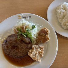 旦那は日替わり昼膳 ペッパーハンバーグ&ソーセージ&おろし竜田揚
