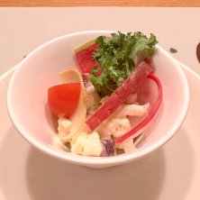 相馬原釜の海より 真蛸とカリフラワーのサラダ 青柚子胡椒クリームを和えて