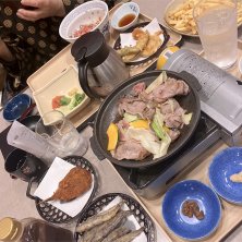 ジンギスカンとめひかり唐揚げとアジフライとフライドポテト 次の日は母を連れてあちこちのなかなかハードな一日になる予定なのでサクッと夢庵 ジンギスカンのタレと薬味のお漬物美味しかった