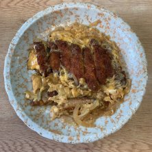 昨日の昼食•その3 親子丼、豚汁(大)、刺身(中とろ)😊