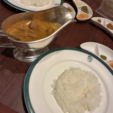 メインディッシュはインドカリー スモールポーション。やっぱり新宿中村屋に来たらこれ食べないと。お代わり自由と言われたのにピクルスお代わり無視されたのはさみしい…。