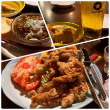 お疲れさま会。仕事のあとのビールはおいしい🤤名物のとろすじ芋煮込み、山形のビーフシチューのキャッチコピーがぴったり。炙りしめ鯖はもちろん、ポテトフライがじゃがいもだけでなく、長芋やさつまいもも混ざってて、食感が違っておいしかった。この日の為に用意しておいた和田酒造の大吟醸『名刀月山丸』、お料理もおいしくてお酒がすいすい進んでしまう✨