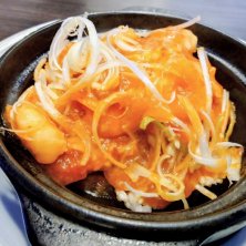 熱々の土鍋でやってくる "エビチリ熱々おこげ"は サクサクのおこげに 店員さんがテーブル上で 熱々の海老チリをかけてくれます サクサクの"おこげ"は そのままスナック感覚で頂くのもよし 甘みも感じるピリ辛チリソースで しならせて頂くのも良しで 食感の違いも楽しめます "海老"もたっぷりでいい感じ