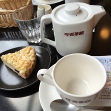 ポットサービスのコーヒー(大正浪漫ブレンド)で、ブルーベリータルト。