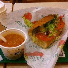 やっと♪♪ サブウェイデビュー( ^ω^ ) ホームページで予習バッチリ!パンはセサミ、ハニーマスタードソース、ピーマンとピクルスを増量してもらいました! 大口開けて食べなあかんけど、野菜たっぷり美味しかった♡