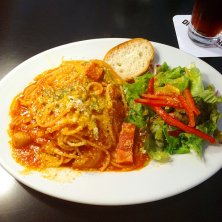 んで、アマトリチャーナのスパゲッティー二を食べますよ