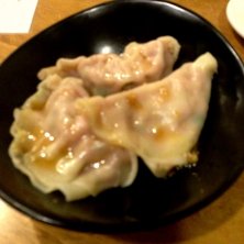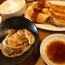 ランチの油そばセットについてる餃子。ちょい大きめ、餡はほぼ肉。粗めの挽肉が肉味を主張してくる。食べ応えアリ。心なしか…気のせいか…ちょっと苦かった。