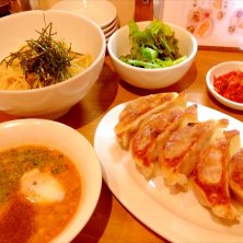 餃子はボリュームたっぷり、もちもちジューシー。ゴマだれのつけ麺も不満なくおいしかった!サラダもキムチもついてコスパよし!また来たい。
