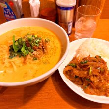 担々麺辛目!そしてその奥にはしっかり半ライスが!!!