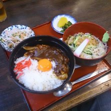 カレー丼セット カレーが甘い! リンゴとハチミツ、とろーり溶けてるどころの騒ぎではない。 ほぼハチミツのような甘さ。危険!