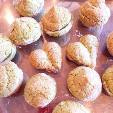 抹茶のダックワーズ 教わってきました。 口金で絞って作るので、コロンと可愛く そしてハートなどのアレンジも可能♪ とっても楽しく勉強になりました( ´ ▽ ` )ノ 美味しかったし、復習しなくちゃ♪