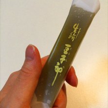 豆子郎の、抹茶の生ういろう(੭ु ›ω‹ )੭ु⁾⁾♡ 蒸したて、やわやわの生絹豆子郎は賞味期限3日しかないから、早く食べなきゃ(ૢ˃ꌂ˂)Շ^⃛ むにょ〜ん具合伝わるかなぁ? ワンコも舌舐めずりちぅ( ›◡ु‹ )