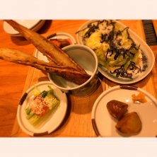 。オススメ野菜の五点盛 キャベツの塩昆布シーザー風 牛蒡の天ぷら うるいの黄身醤油がけ ばってん茄子の生ハム巻き インカの目覚めの味噌和え うん、やっぱり野菜が美味しい(*ᴗˬᴗ) だから来てしまう。 店舗が多くても、落ち着く店は少ない。こちらは、大人仕様だから最高です( •́ .̫ •̀ )