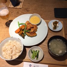 練習終ったのでお昼食べますね。鶏の竜田揚げ和風タルタル添え。