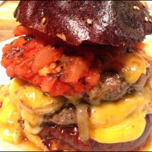 チーズx3 w チェダーチーズ & トマト〜今日のファインディングは、トマトをグリルにすること! 袋の中小籠包状態〜そして、その熱でチーズが溶けて、チーズフォンデュ状態。課題は、熱くて持ってられない