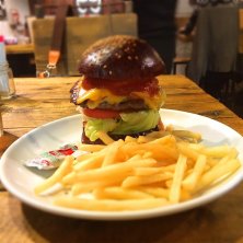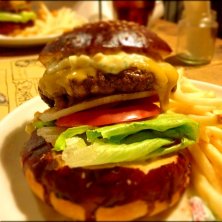 ハングリーヘブンチーズバーガー。 ガッツリ頂きました。 カリカリ焦げたバンズと割と固めに絞められたパティ、レタス、オニオンなど。 実はチーズがなかなか良い。 微塵切りのピクルスなんかもアクセント。