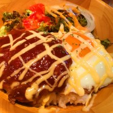 ロコモコ☪︎⋆。˚✩ ハンバーガーだけではなく、ご飯ものもありました。ロコモコとタコライス(ˊᵕˋ) 少ししょっぱ目?のハンバーグソースが、ご飯にあい、半熟目玉焼きでマイルドになる♡.。
