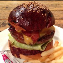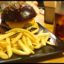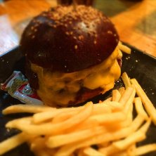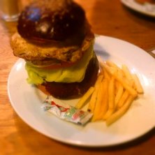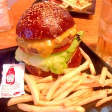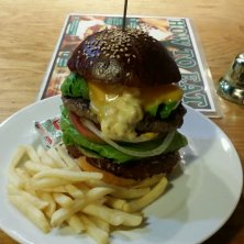 前々からいきたかったハングリーヘブンでベーコンチーズバーガー。黒いバンズが美味しくパテもベーコンもチーズもいけてます。夜のギュービックも気になります。