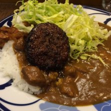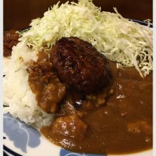 インドカレー、ハンバーグのせ。ここのハンバーグは手作り感いっぱいで地味にうまいのよ。しかも100円とお値打ち。