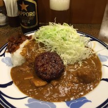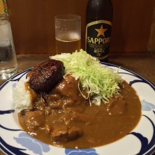 インドカレーハンバーグ乗せに小瓶ビール! ご飯の時は小瓶が一番!