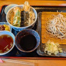 久しぶりに娘が帰ってきた時の お昼ごはん 駅までお迎えに行った足で🚗³₃ そのまま蕎麦を食べに行きました。 定食、すごい量でしたが 娘は難なくペロリと完食😋👏 私はキノコの天ぷら蕎麦にしておいて 良かったε-(´∀`;)ホッ
